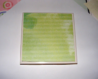 your first square of paper on top of your mod podge - don't forget to run your finger over the edges - Allow the coaster to dry for just a few minutes. Usually by the time you’ve finished the fourth coaster, the first is ready for the next step. If you’ll be stamping or adding stickers, now is the time to do this.